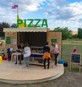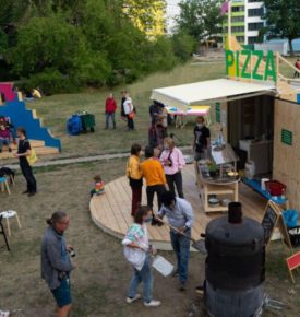 Bella Grünau to tymczasowa pizzeria w dzielnicy Grünau w Lipsku. Latem 2020 roku wyschnięta łąka na osiedlu zamieniła się w miejsce spotkań i świętowania. Pizzeria łączy gastronomię z koprodukcją mieszkańców, aby tchnąć życie w powojenne osiedle mieszkaniowe.