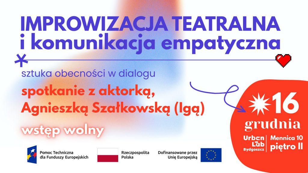 Zapraszamy na wyjątkowe spotkanie z Agnieszką Szałkowską (Igą) – aktorką impro oraz trenerką komunikacji, która pokaże, jak twórczo łączy sztukę improwizacji z praktyką komunikacji empatycznej.