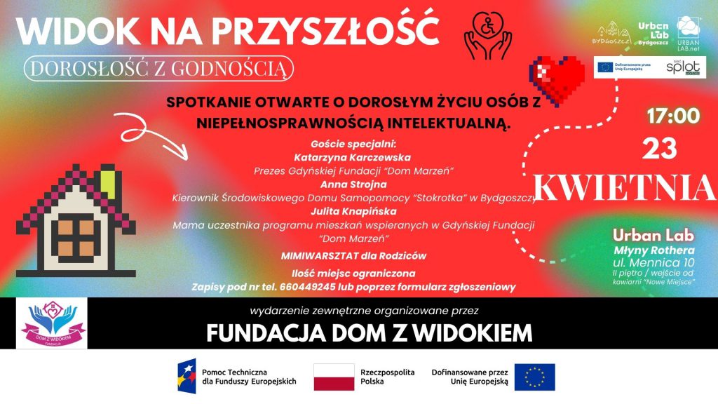Zapraszamy na spotkanie: „Widok na przyszłość – dorosłość z godnością” Rozmowa o dorosłym życiu osób z niepełnosprawnością intelektualną. Spotkanie o dorosłym życiu osób z niepełnosprawnością intelektualną.